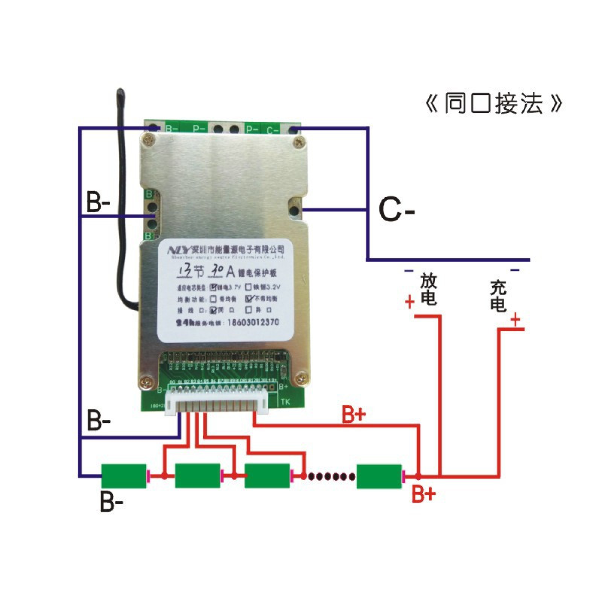 BMS 13S Li-ion 48V 50А з балансуванням, симетрична